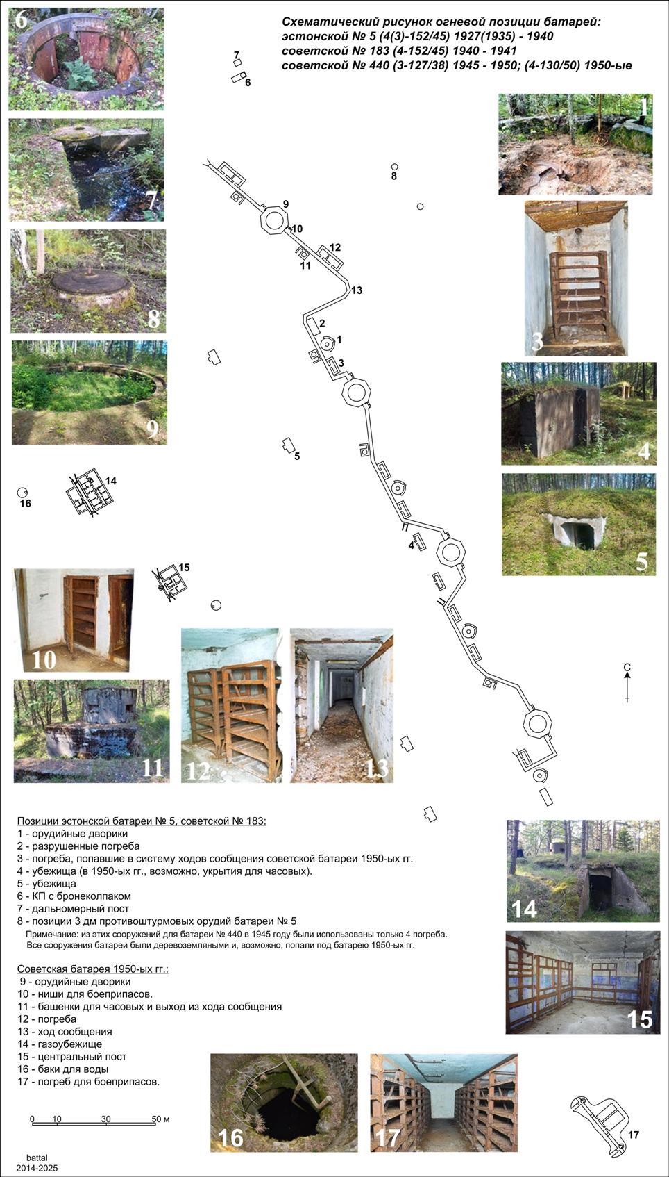 | 1950-ые, первая половина | Батарея № 440 перевооружена на 4 - 130 мм орудия Б-13. Сохранившиеся сооружения старых батарей после модернизации вошли в эксплуатацию. | |